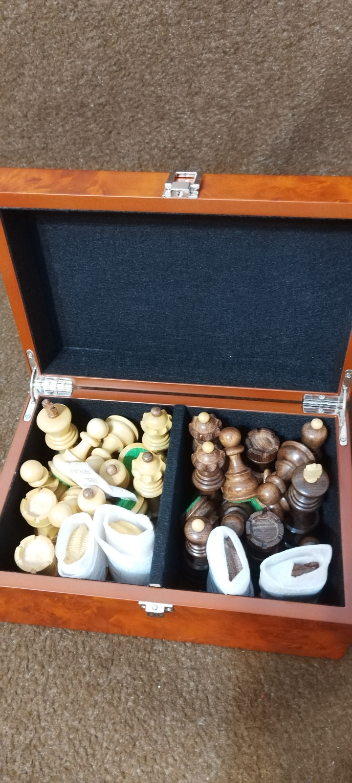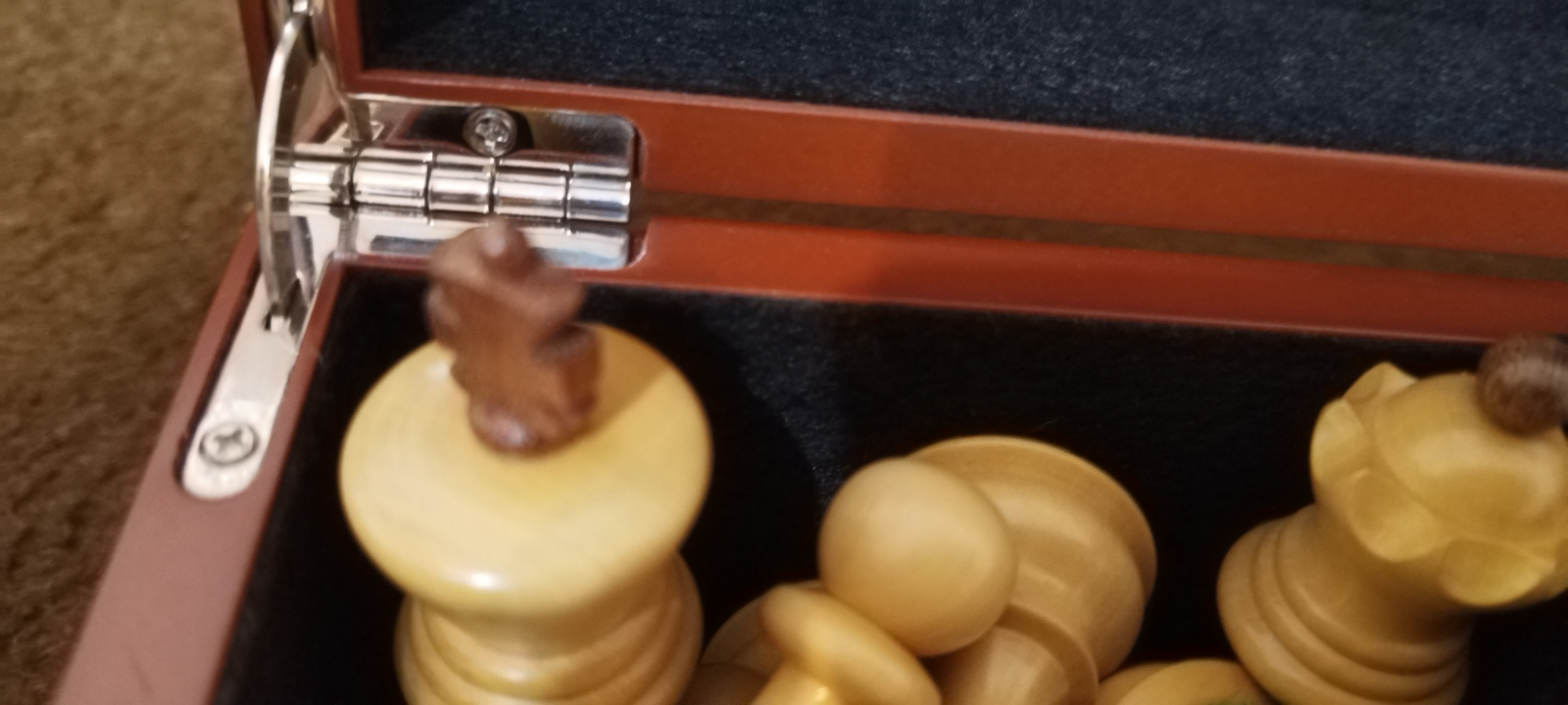 Cutia arată foarte bine, e bine făcută, căptuÈ™ită cu catifea, ceea ce face ca piesele să nu "sufere". Încape bine un set de piese Staunton no 6. Sunt super mulÈ›umită!
