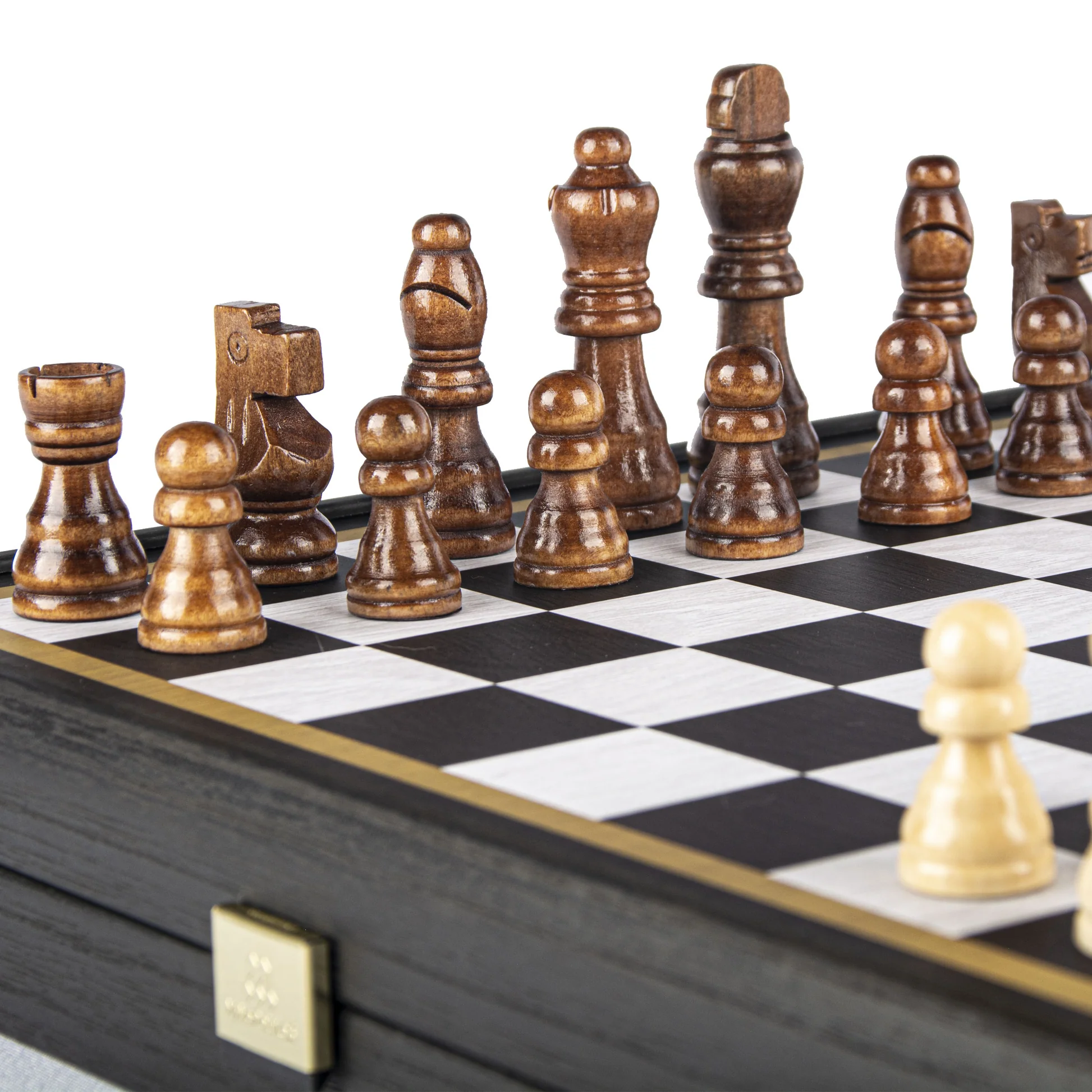 Stil clasic - Joc combinat 4 în 1 în carcasă din lemn de nuc -Șah/Backgammon
