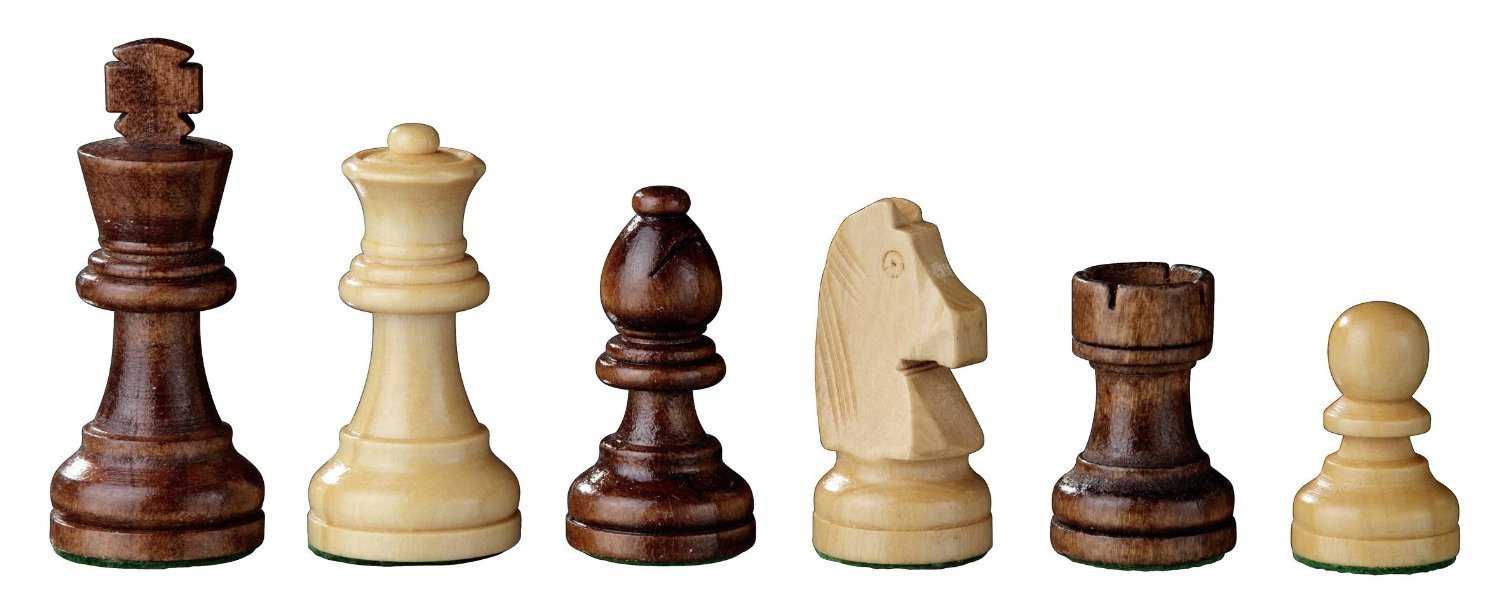 Piesele de sah sunt din lemn de schima (o specie de arbori vesnic verzi apartinand familiei arborelui de ceai) cu culori naturale si imprimat de nuc, au greutate pentru o mai mare stabilitate si pasla la baza.