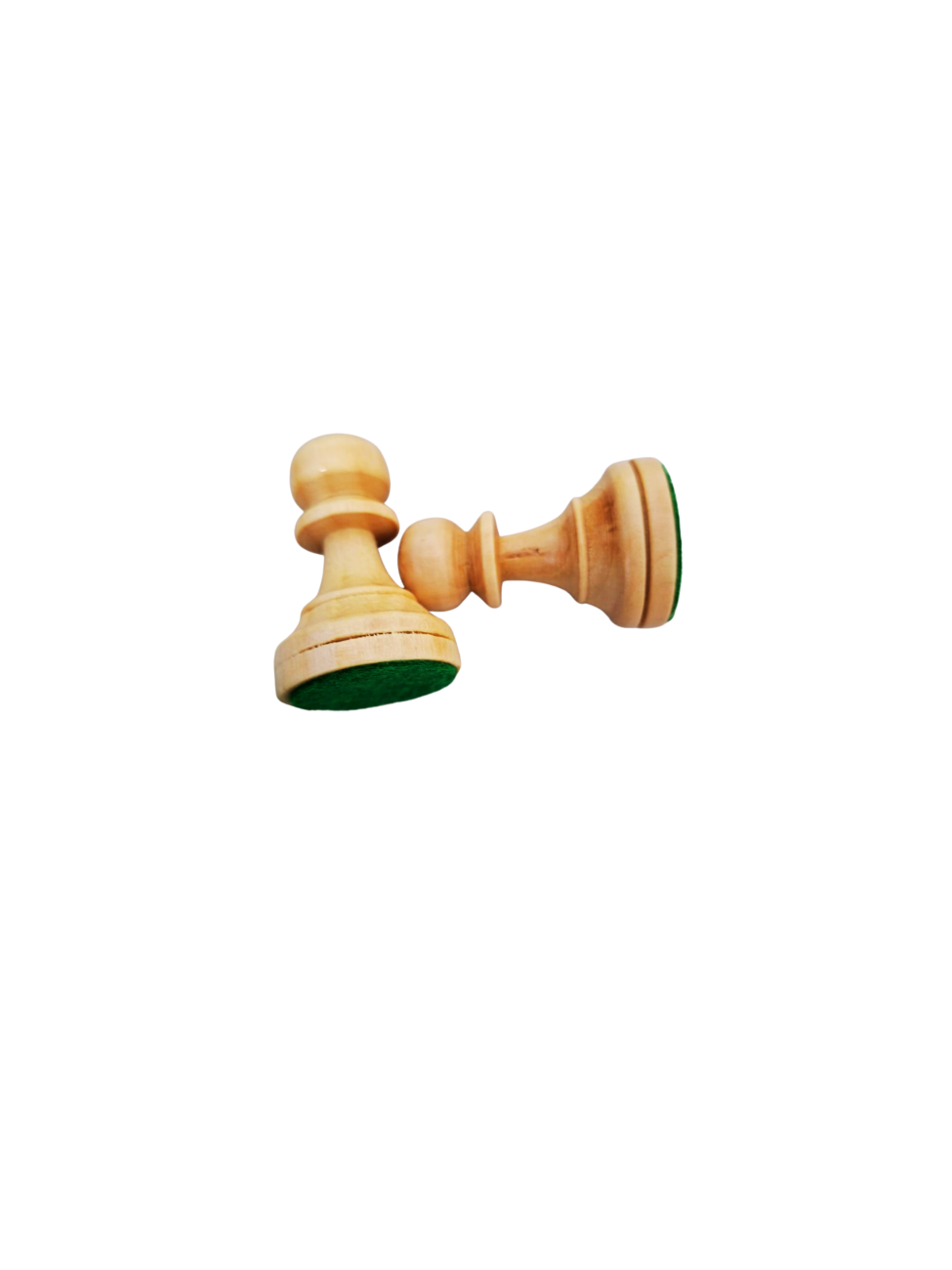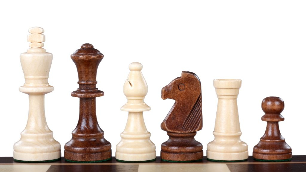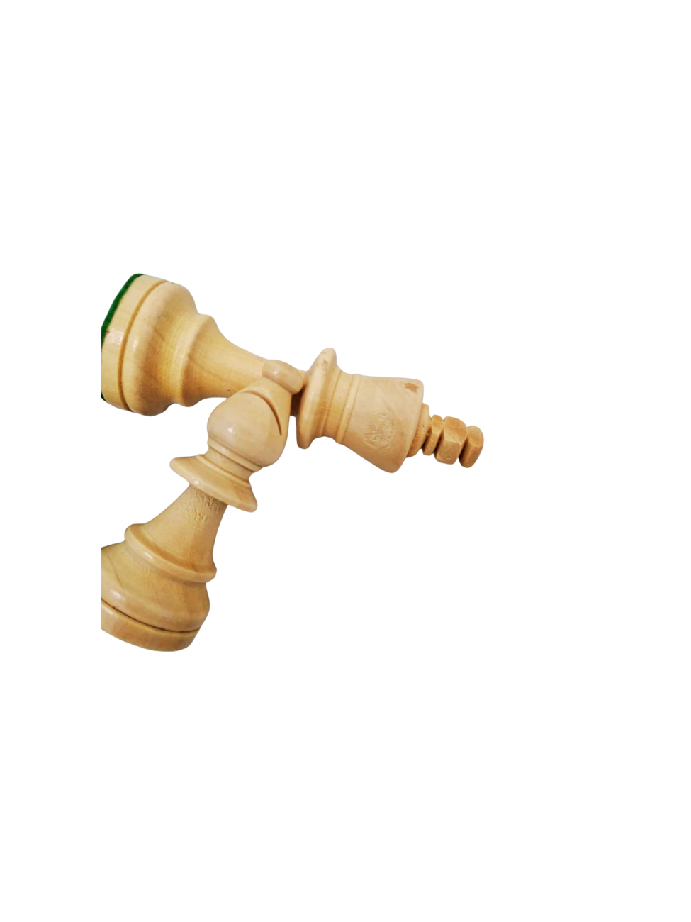 Piese de sah din lemn intarite pentru stabilitate cu metal.