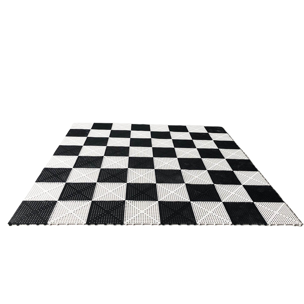 Cu dimensiunea totală de 240×240 cm, tabla este compatibilă cu piese de șah gigant din plastic de 63 cm, precum și cu piese gigant pentru dame. Se rulează rapid, asemenea unui covor, fiind ușor de transportat și depozitat – un avantaj major pentru resorturi, companii de închiriere și organizatori de evenimente.